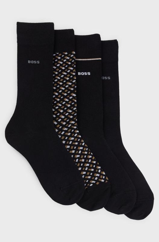 A giftable four-pack of monogrammed and logo-trimmed socks by BOSS. Each regular-length pair is crafted in a stretch-cotton blend for comfort. This product is partly made with organic cotton. Our organic standards do not allow the use of synthetic fertilisers, pesticides or genetically modified seeds.