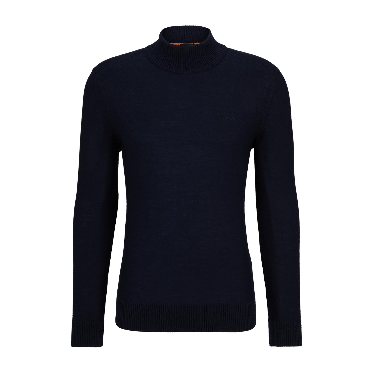 A rollneck sweater cut to a straight fit and embroidered with branding by BOSS Menswear. This product contains at least 60% better raw materials. This product is made with responsibly sourced wool. For us, responsibly sourced means mulesing free, and meeting the standards of the Five Freedoms of animal welfare.