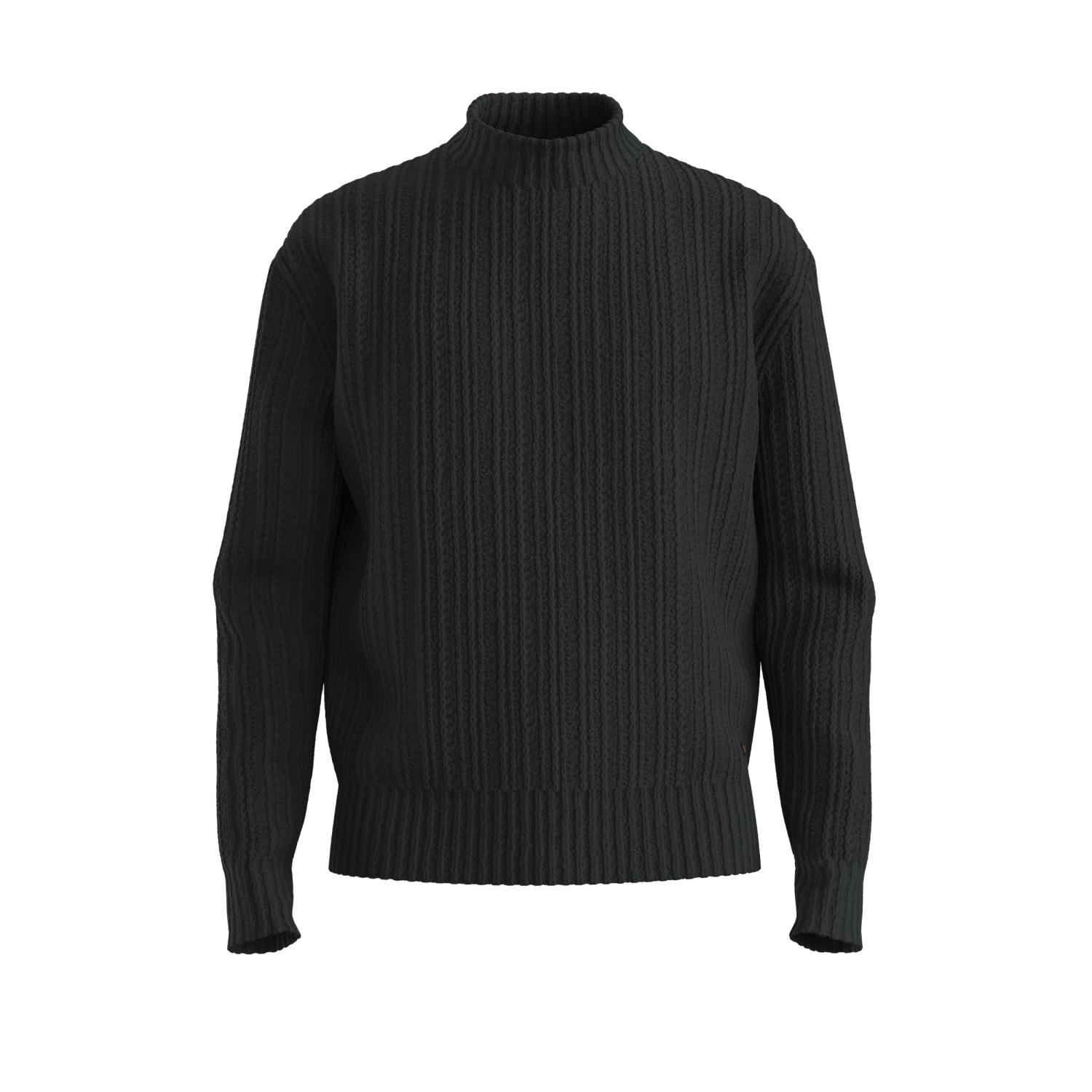 Knitted with a soft, textured bouclé rib, this BOSS Menswear sweater makes an ideal layer. Cut to a relaxed fit with a mock collar.