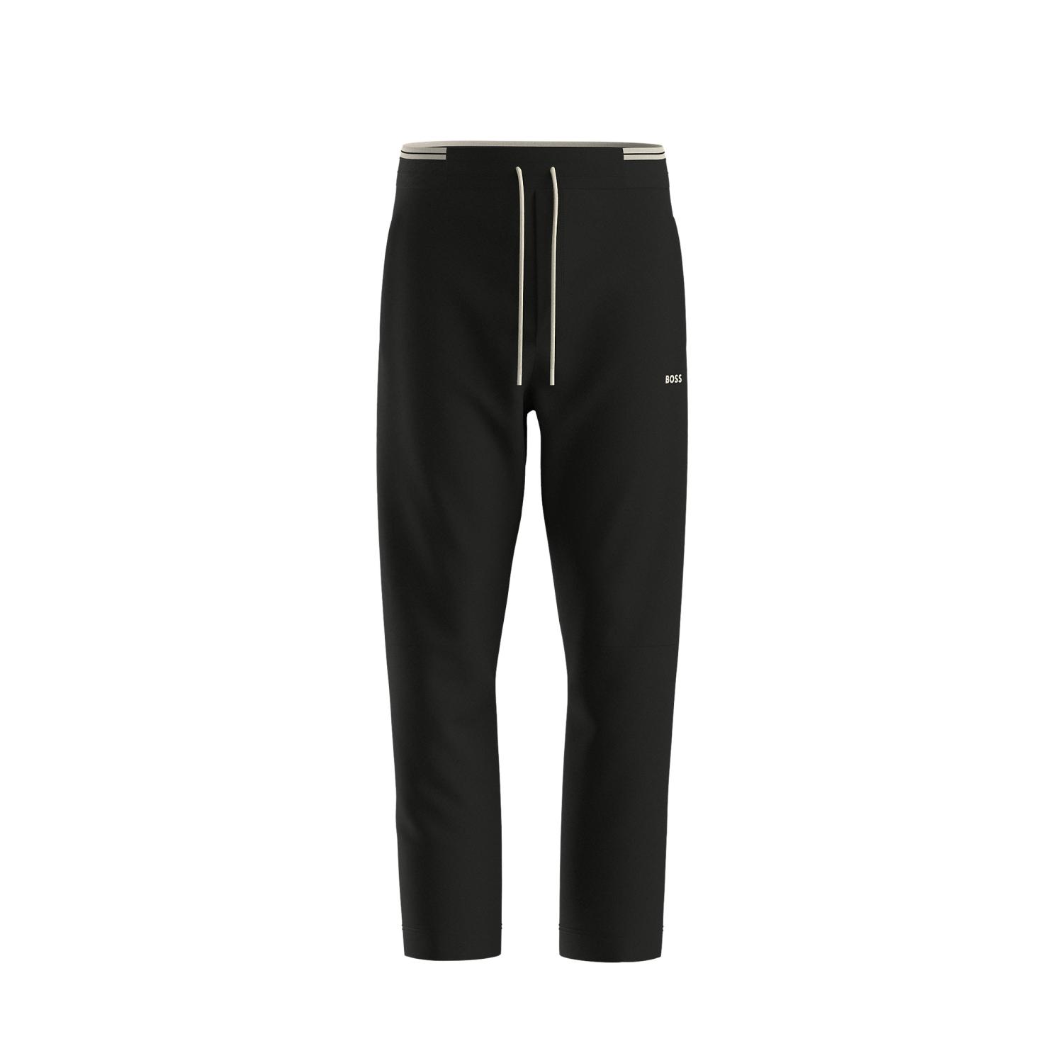 With a sporty striped waistband and moulded logo, these BOSS Menswear tracksuit bottoms are cut to a straight fit. Cotton-rich interlock fabric with stretch.