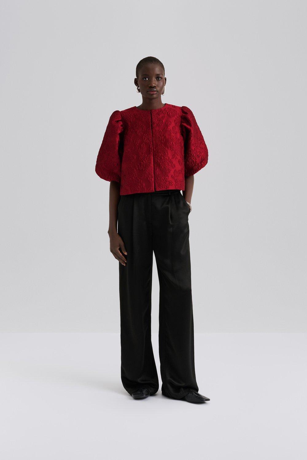• Yttertyg: 100% Polyester, Foder: 97% Polyester 3% Elastan
