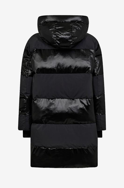 • Mjuk, vadderad jacka med andningsbart, vattentåligt material • Dunliknande fyllning • Fast, justerbar huva • Mudd med tumhål i ärmsluten • Tvåvägsdragkedja • Textilfoder • En invändig dragkedjeficka • Fodrade sidfickor • Avslappnad passform
