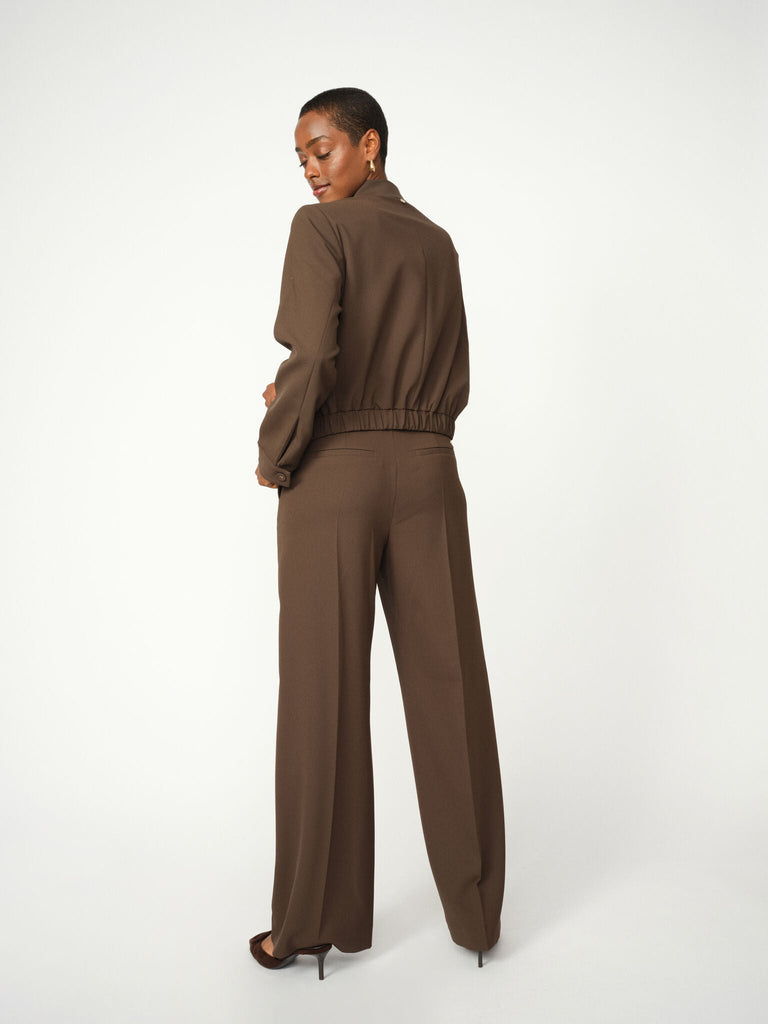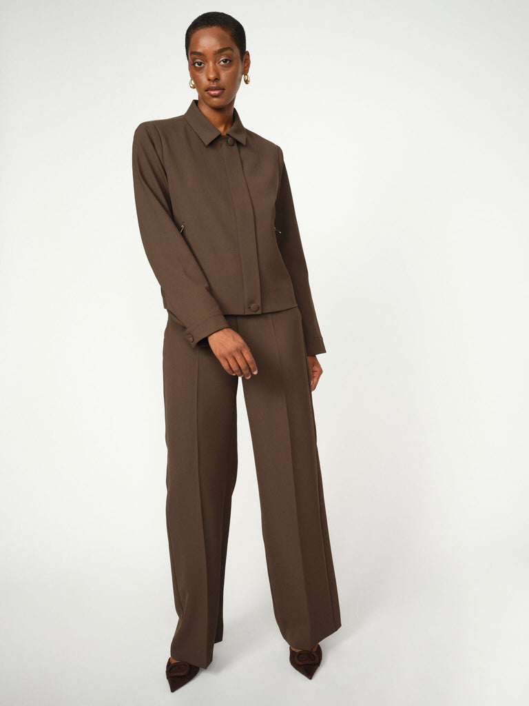 Tillverkade med en medelhög till hög midja och en rak passform, är dessa skräddarsydda byxor en oumbärlig del av varje klassisk garderob. Med pressade veck och en dold dragkedjestängning utstrålar de tidlös sofistikering. Stoppa in en feminin blus och fullända looken med en matchande blazer för en avslappnad elegans.