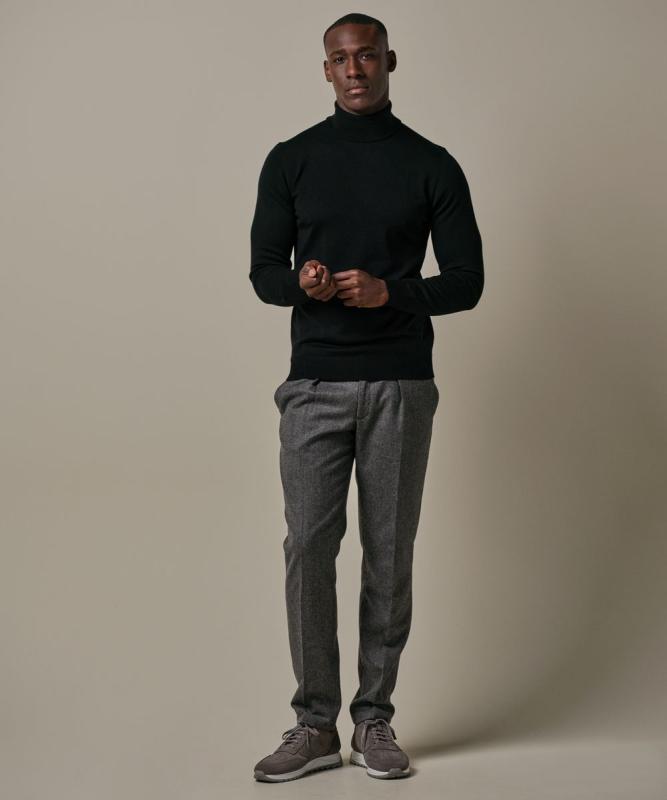 This black turtleneck is a fresh addition to your winter wardrobe. Light and made from warm, comfortable, fine merino wool. Wear your turtleneck under one of our overshirts or jackets for a complete look. The turtleneck is made from RWS-certified mulesing-free fine wool and can be machine-washed on the wool wash cycle.