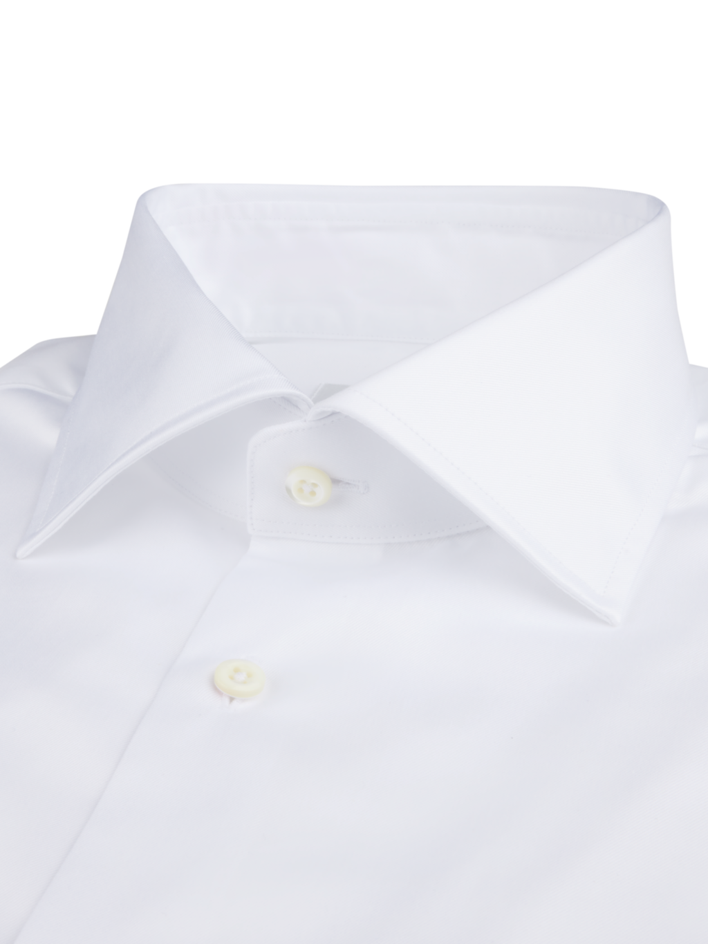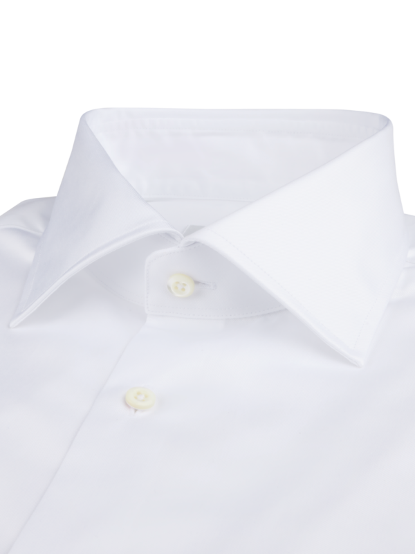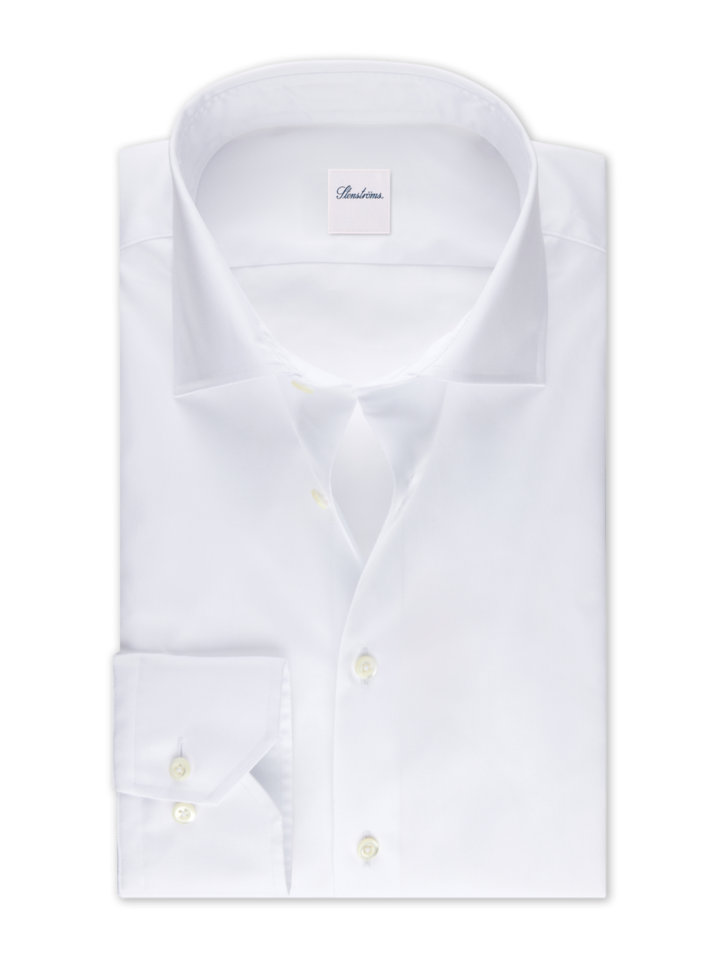 Garderobens absoluta grundsten – den klassiska enfärgade skjortan. Gjord av dubbeltvinnad (twofold)bomull och skuren i en smal modell. Detaljerad med en krage i modell cut away, enkla manschetter somgår att justera i två knapplägen. Passar lika bra på kontoret som på middagen. Vi gillar att matcha denna skjorta till ett par snygga kostymbyxor.