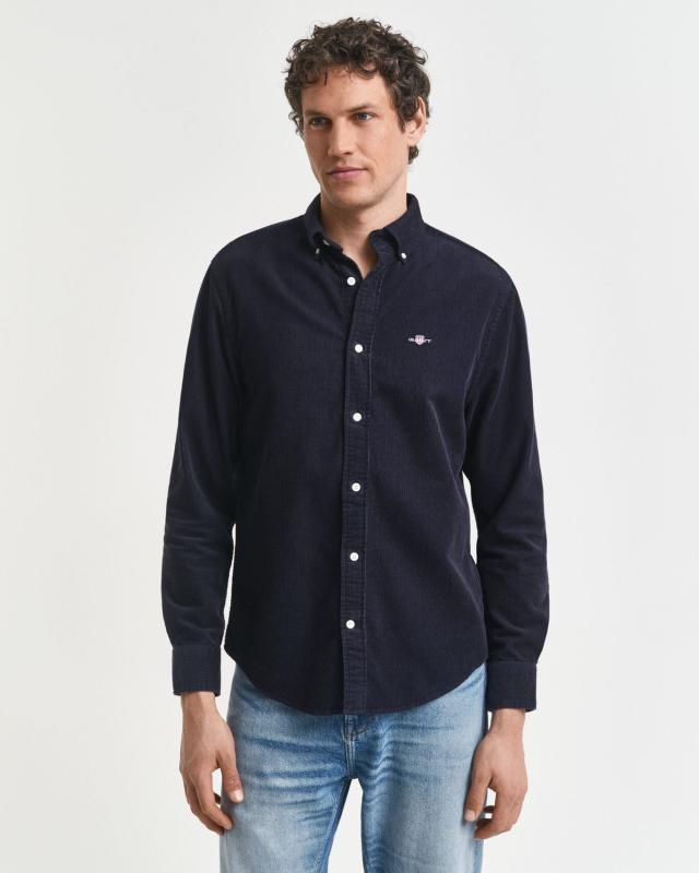 Skjorta i premium bomullsmanchester med regular fit som är ett måste för denna mellansäsong. Den har en klassisk button down-krage, justerbara manschetter, rundad fåll, knappar i återvunnen polyester, boxpleat och locker loop i ryggen och en broderad GANT-sköld.