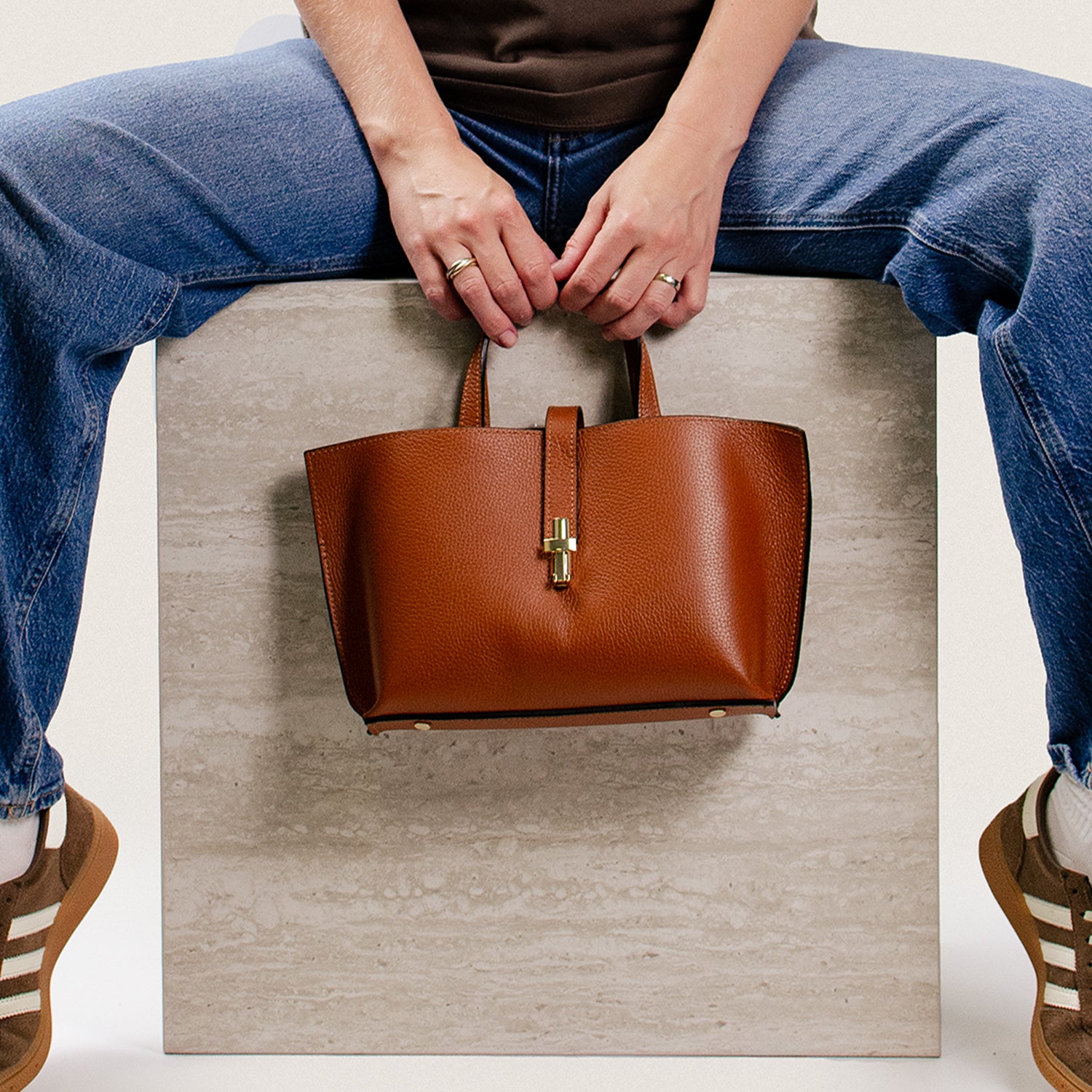Elegant väska med stilrent lås och praktisk design. Inuti finns ett fastsytt fack som påminner om en liten påse, vilket ger totalt tre separata fack för perfekt ordning på dina saker. Den långa axelremmen gör väskan bekväm att bära över axeln.